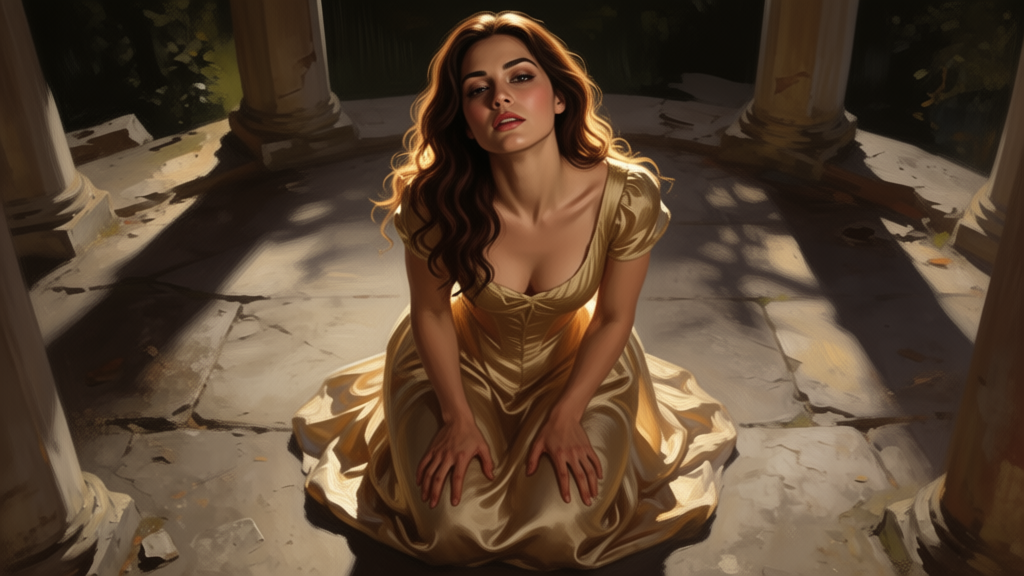The stone must have been cold. Hard. She didn't flinch, but I saw her adjust her weight, finding a position that worked. This sharp, questioning woman, on her knees in a crumbling folly with afternoon light catching the places where her hair had come loose from its pins. It did something to my chest that wasn't just arousal.